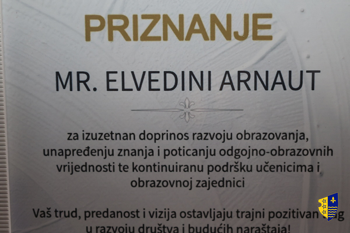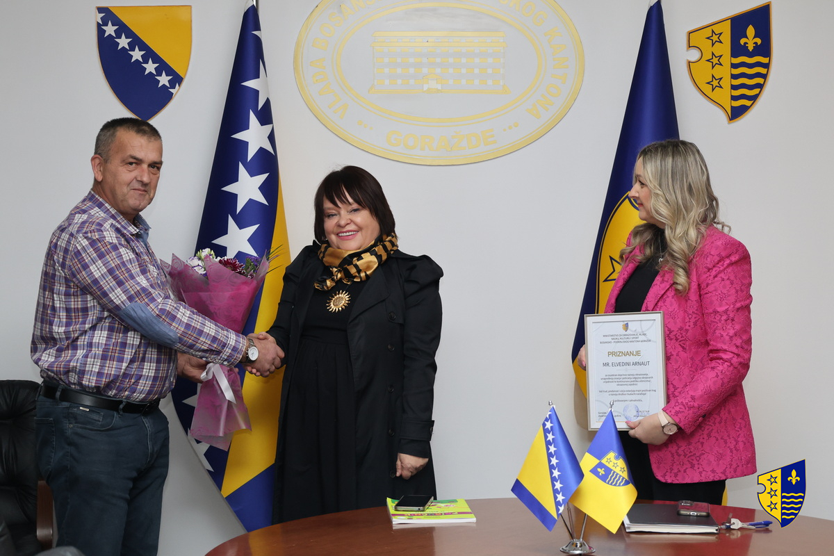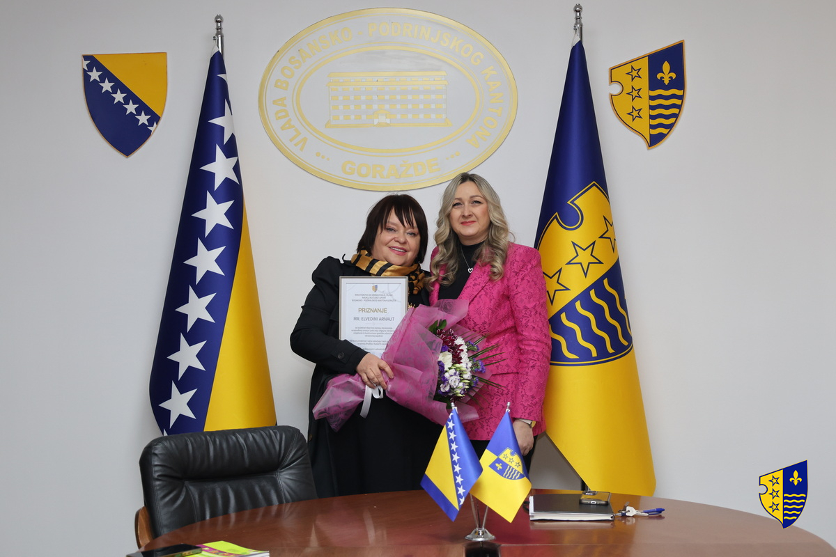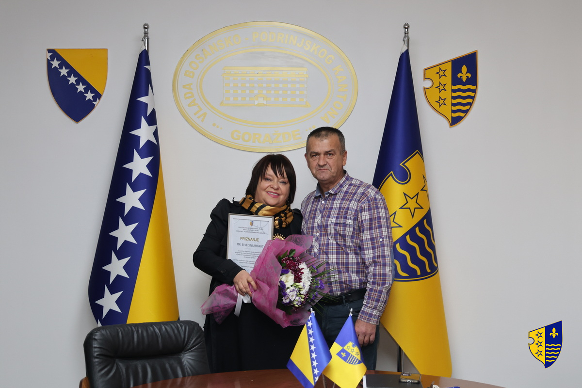 Ministrica za obrazovanje, mlade, nauku, kulturu i sport Adisa Alikadić-Herić i direktor Pedagoškog zavoda Nijaz Zorlak sa saradnicima, upriličili su danas svečani prijem za nastavnicu Elvedinu Arnaut, povodom njenog autorskog doprinosa izradi priručnika za školske eksperimente iz biologije, te joj ovom prilikom uručili zahvalnicu za izuzetan doprinos unapređenju nastave u oblasti prirodnih nauka.
